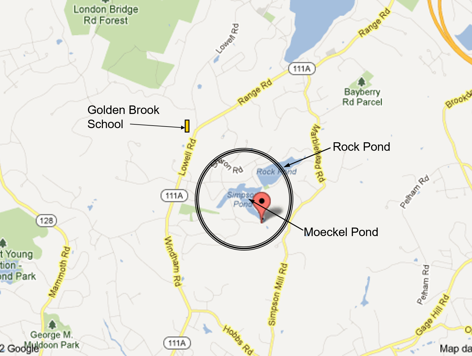 In 2010, damage to Moeckel Dam forced the once vibrant pond to be drained, leaving a dry lifeless bed of weeds. Waterfowl lost their feeding grounds, silt washes downstream, fish and turtles are gone. There is no water for fire protection, and a beautiful New Hampshire pond is lost.