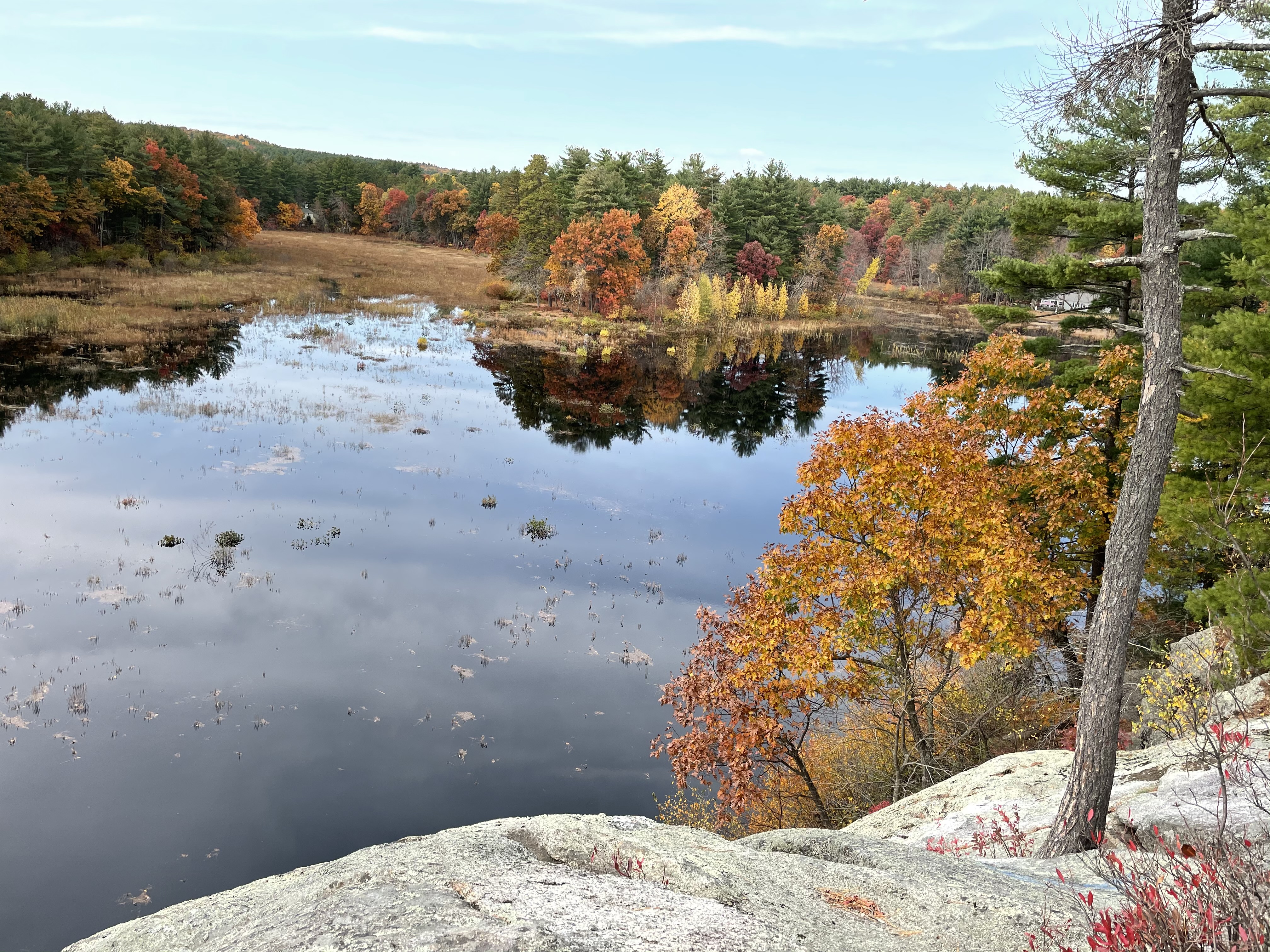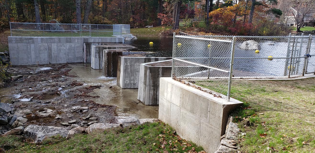 2020: After a decade of research, planning, community support, hard work, tremendous persistence, and an amazing construction crew, the Marston-Finn Conservation dam has been completed! On September 21, 2020, the New Hampshire Dam Bureau approved the Marston-Finn Conservation Dam to begin holding water, and on September 25, the George Cairns and Sons crew took the momentous step of removing the sandbags comprising the coffer dam. Ten years in the making, water was once again able to re-establish the wildlife haven of Moeckel Pond. With the help of some much needed rain the pond quickly began to fill and by October 23 water was flowing over the dam. Dozens of ducks returned within days to enjoy the new pond. We can’t wait to see what natural beauty the pond will bring in the years to come!